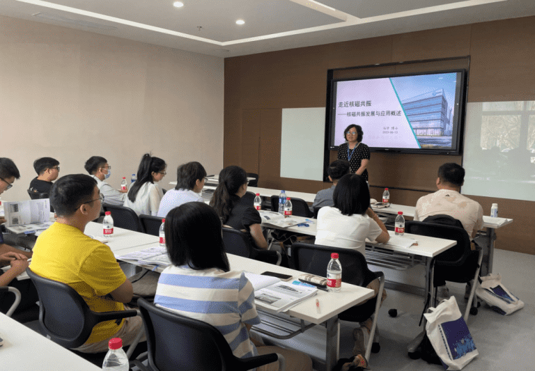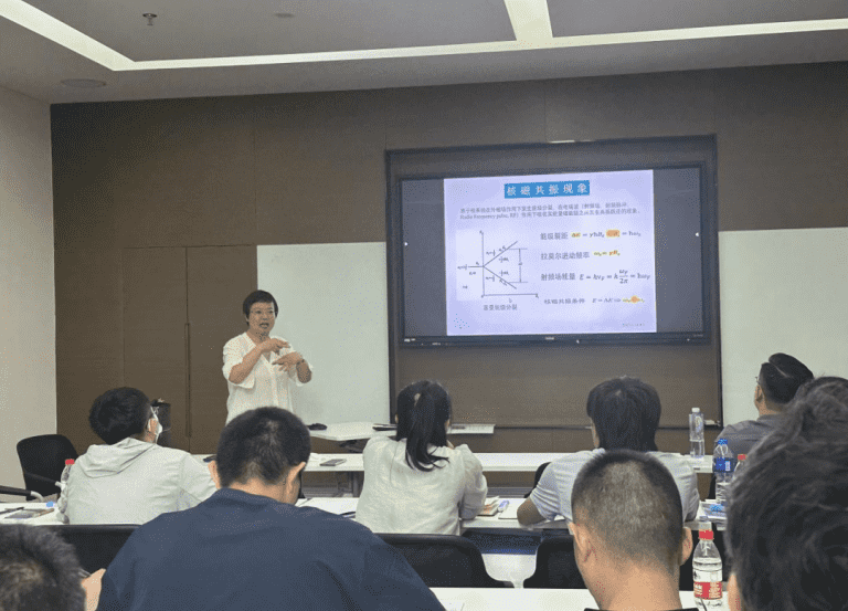 本次培训班采用理论与实践相结合的授课方式。培训开始之初,上海泰纽科教冯博士、复旦大学姚老师、苏州万象城平台分析工程师们针对核磁共振技术发展、核磁共振成像及原理、变场核磁的原理及应用、核磁共振分析应用软件、成像软件、数据处理与图像处理软件等内容进行系统的讲解。