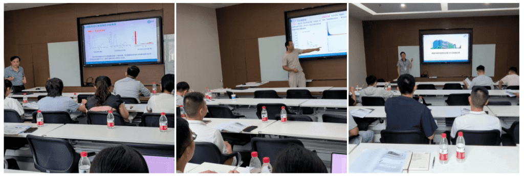 随着课程不断深入,由万象城平台分析博士后工作站站长、英国爱丁堡大学应用地球物理博士的燕军教授;毕业于上海大学石油工程的博士后华老师;毕业于兰州理工大学的博士后应博士,硕士毕业于大连工业大学食品科学与工程专业的林老师等针对石油能源应用、地质地矿应用、食品农业及材料应用和核磁测试数据的处理技术等,结合不同领域的案例分析进行了授课和讲解。