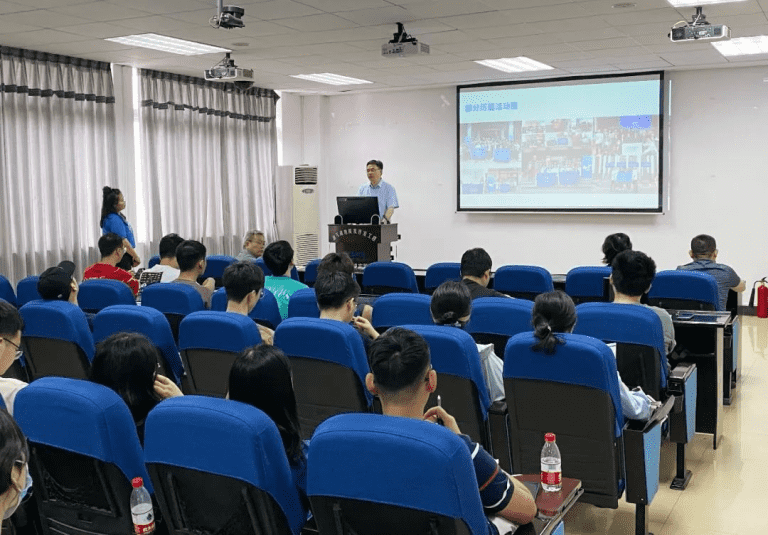 活动中,万象城平台分析产品总监高杨文向在场师生介绍了万象城平台的发展历程、产品应用领域、低场磁共振技术原理等;