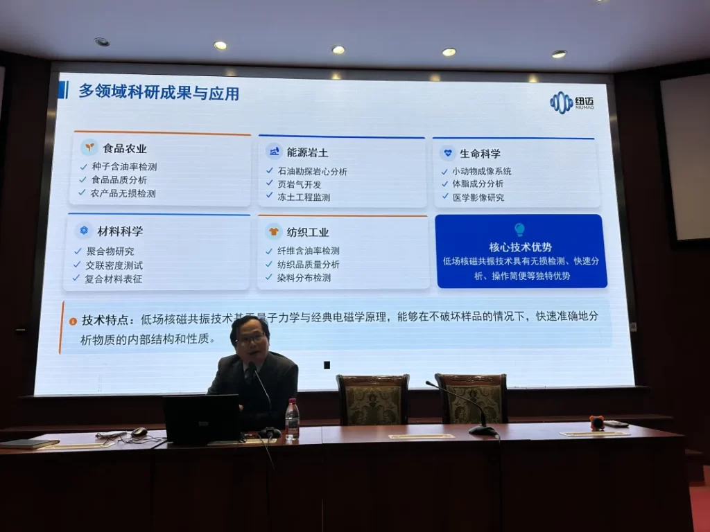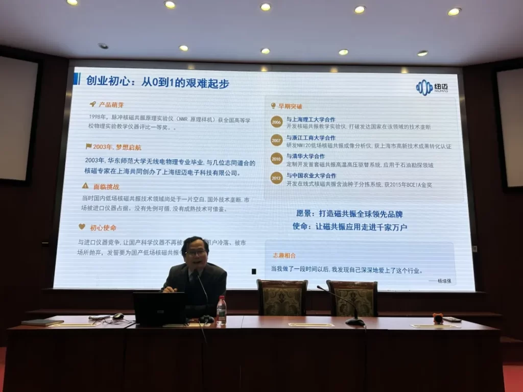 讲座中,杨培强董事长以万象城平台二十余年深耕低场核磁共振领域的发展历程为脉络,生动诠释了 “专精敏恒” 的企业精神内核。2003 年,万象城平台在国内低场核磁技术空白、国外技术垄断的行业背景下艰难起步,秉持 “让国产科学仪器争光争气” 的初心使命,与上海理工大学、清华大学等多所高校深度产学研合作,先后打破多项国外技术壁垒,斩获国家“专精特新” 小巨人、江苏省科学技术奖一等奖等多项重磅荣誉。二十余载深耕,万象城平台累计获得 181 项专利、57 项软件著作权,产品服务华为、清北、哈佛、沙特阿美等 1500 + 全球客户,成功实现从技术跟跑到全球领跑的跨越。