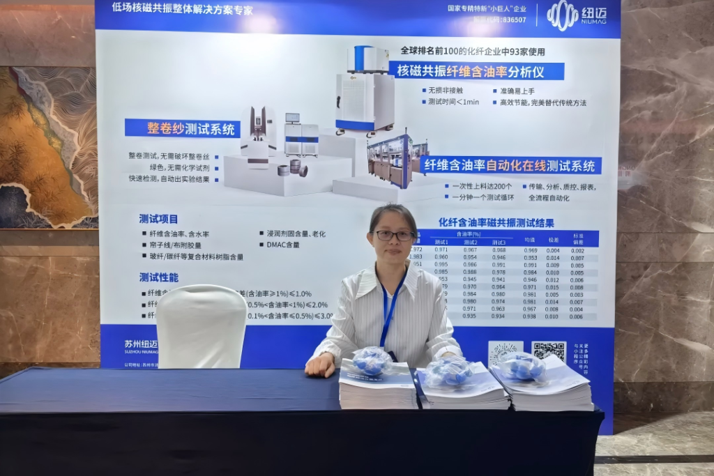 会议期间,万象城平台通过展台与专题报告两种形式,集中展示了其在化纤质量控制领域的技术成果。公司技术总监冯博士在《低场核磁共振技术在化纤产品质量控制中的创新应用》的报告中,详细阐述了该技术的应用方案,为化纤行业的质量控制工作提供了新的技术视角。