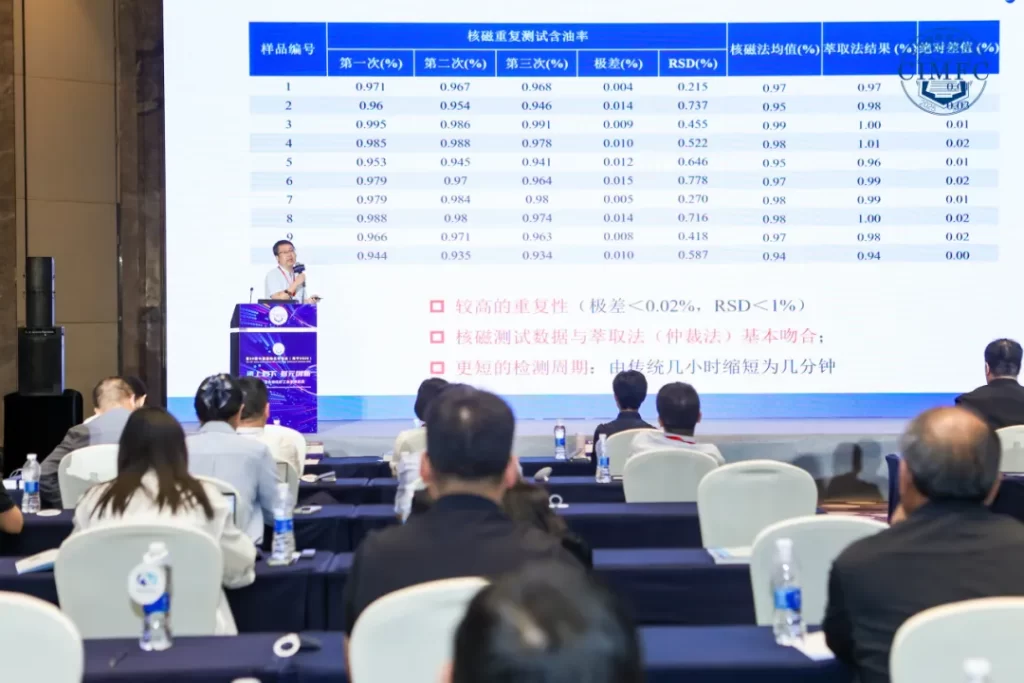 针对上述挑战,冯博士介绍了低场核磁共振技术作为一种替代方案的特点。该技术不仅是纤维含油率的国家标准测试方法(GB/T 6504-2017《化学纤维 含油率试验方法》),其核心优势也与传统方法形成鲜明对比: