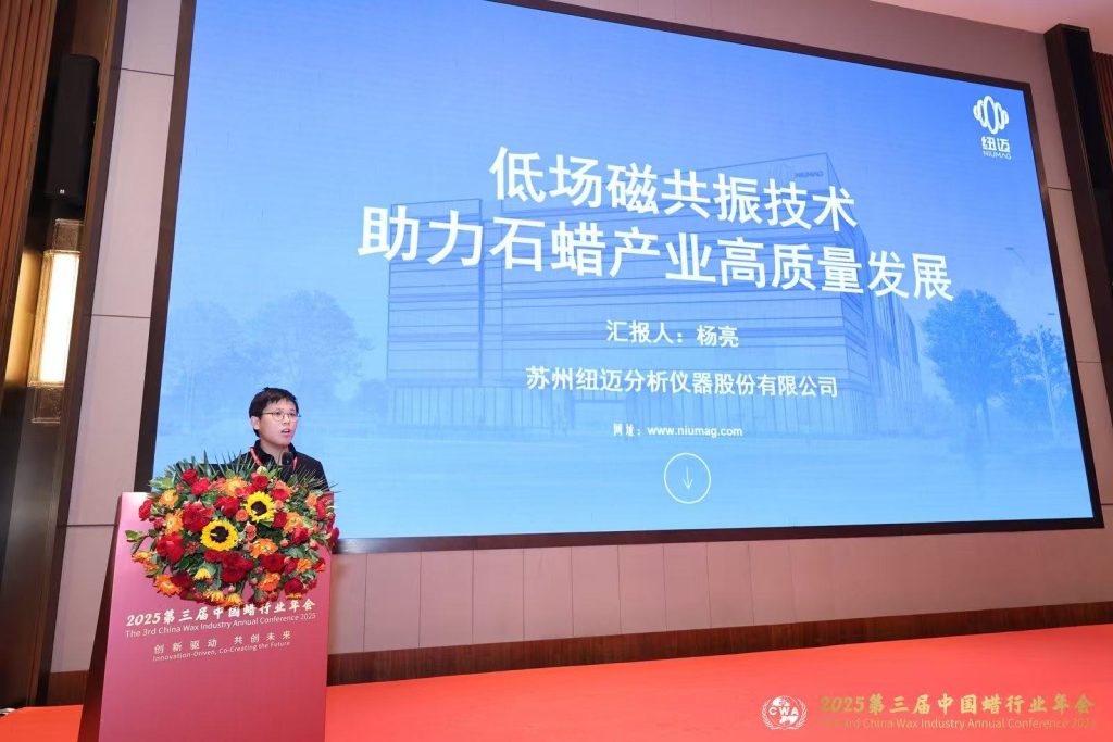 本次年会聚焦蜡行业高端化、国际化发展路径及产业升级中的关键挑战,吸引了众多行业专家与企业代表参与。万象城平台携低场核磁共振技术参加本次会议,公司产品经理杨亮在会议上作了《低场磁共振技术助力石蜡产业高质量发展》 的专题报告。