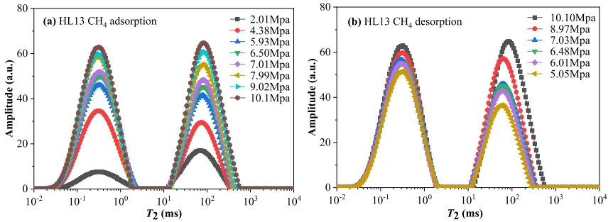 以下为核磁法表征煤炭甲烷吸附/解吸过程CO2竞争吸附特性案例: