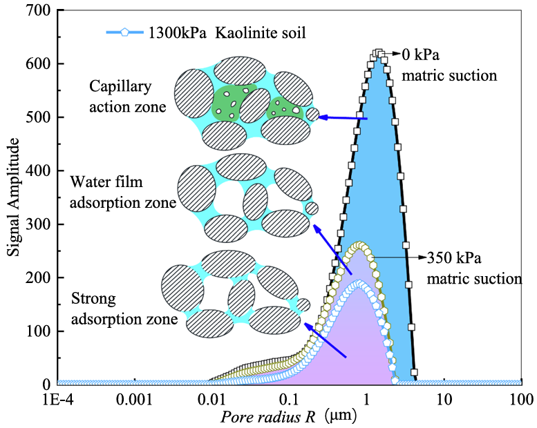 基于低场核磁技术,可以探索不同基质吸力下非饱和土的孔隙水分布特征。这有助于阐明在排水过程中,随着基质吸力增加,水分如何从不同尺寸的孔隙中被排出,从而揭示水分分布和排水行为的动态变化。可以为建立基于孔隙水分布的非饱和土力学模型提供关键见解和参考数据。