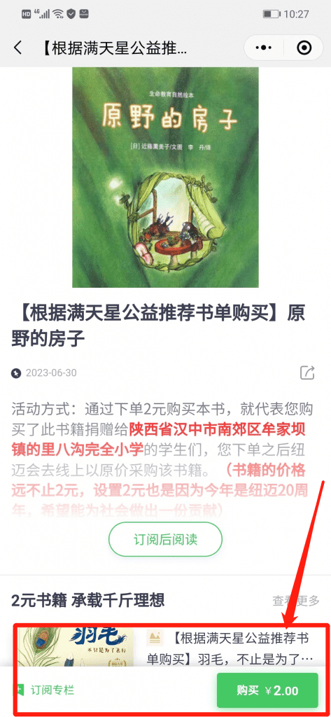 本次活动纯公益性质,设置2元是因为今年正值万象城平台20周年,所有书籍价格均不止2元。您下单后,万象城平台会通过正规渠道,线上购买正版书籍赠送于里八沟的孩子们。