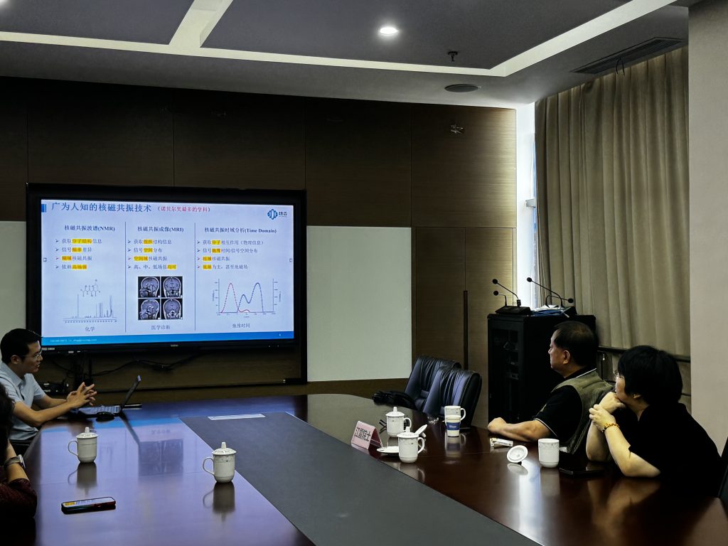 参观结束后,双方在会议室进行了深入的座谈交流。聚焦于低场核磁技术在材料科学,特别是功能界面材料、多孔材料等前沿方向的深度应用。